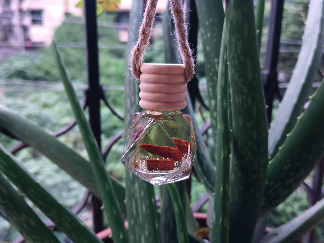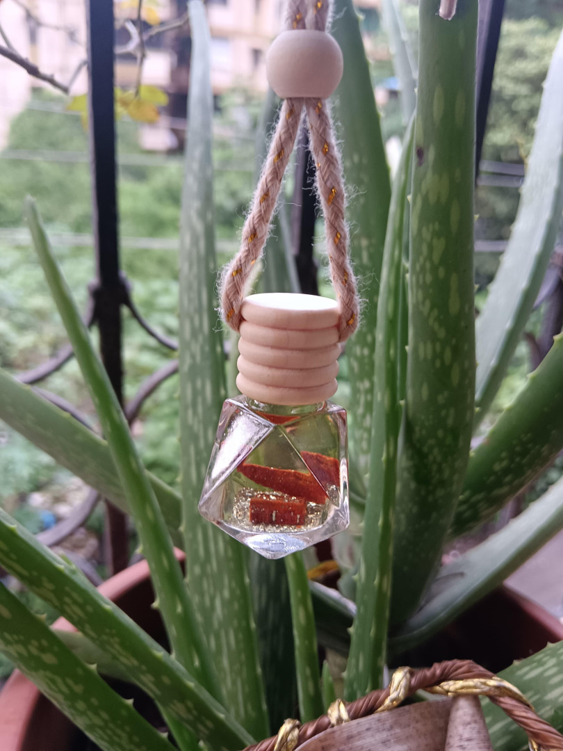 Natural Cinnamon Car Diffuser – Hanging Glass Aroma Bottle with Essential Oil & Real Cinnamon Sticks ( 8 ml )