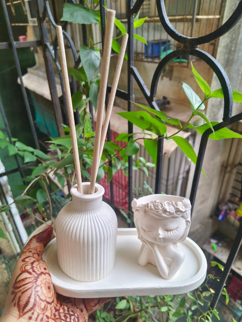 Whether placed on a balcony railing, bookshelf, work desk, or meditation altar, this set instantly uplifts the ambiance with its calming white aesthetic and timeless design. The high-quality concrete offers a smooth matte finish, ensuring durability while adding elegance to your home, office, or studio decor.