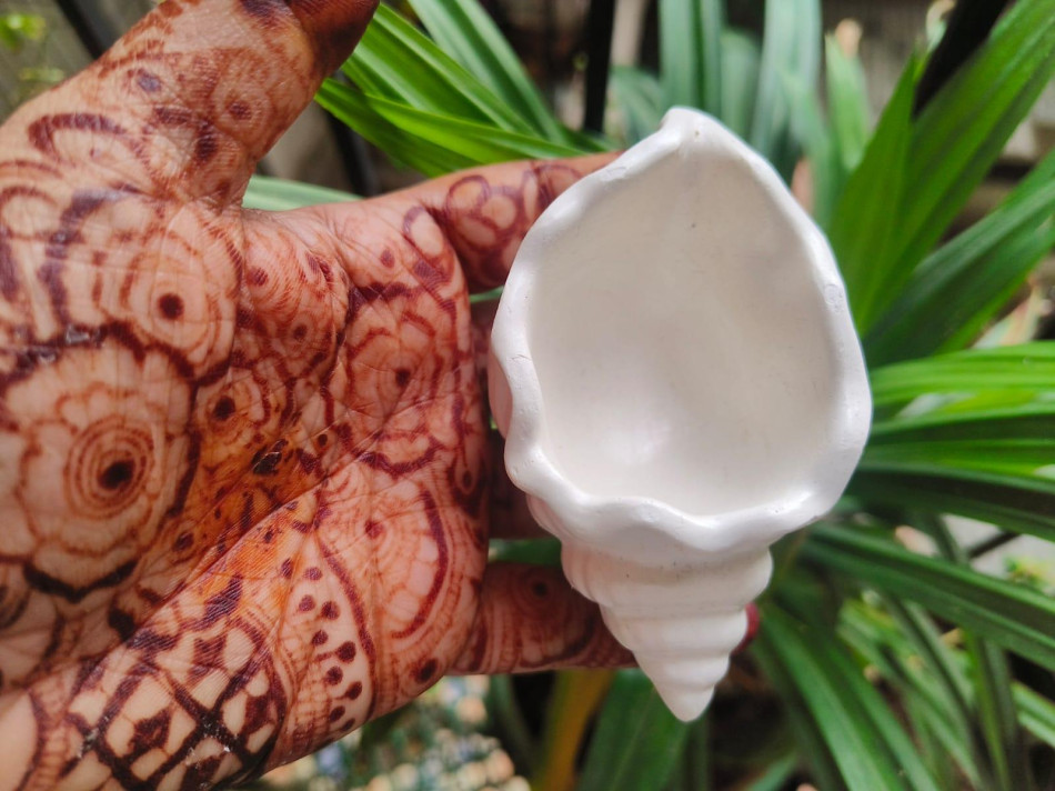 Bring a blend of tradition and minimalism into your home with this handcrafted concrete Sankh candle holder. Designed in the elegant shape of a conch shell (Sankh), this piece doubles as a decorative candle jar and a tealight holder, adding a divine touch to your décor. Crafted with high-quality white art concrete, this empty candle jar is perfect for customizing with your own wax or simply using as a spiritual tea light holder. Whether you’re a home décor enthusiast or a candle maker looking for candle jars in wholesale, this multipurpose concrete candle holder is a must-have. Ideal for gifting during festivals, poojas, weddings, or as a statement piece in your meditation corner.